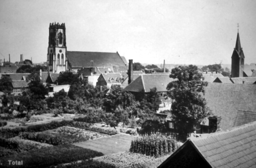 Zur Erinnerung und zum Bild: Umbruch nach dem Zweiten Weltkrieg. 1953 wurde St. Joseph eingeweiht. Ein Jahr zuvor war bereits die Wibbeltschule (über der Kirche) fertig geworden, worüber sich Rektor Gruss stets besonders freute. Außerdem im Bild oberhalb von Kirche und Schule das Drostenholt, das später Dämmers Büschken genannt wurde. Durchs Bild von unten nach oben zieht sich die Wibbeltstraße.